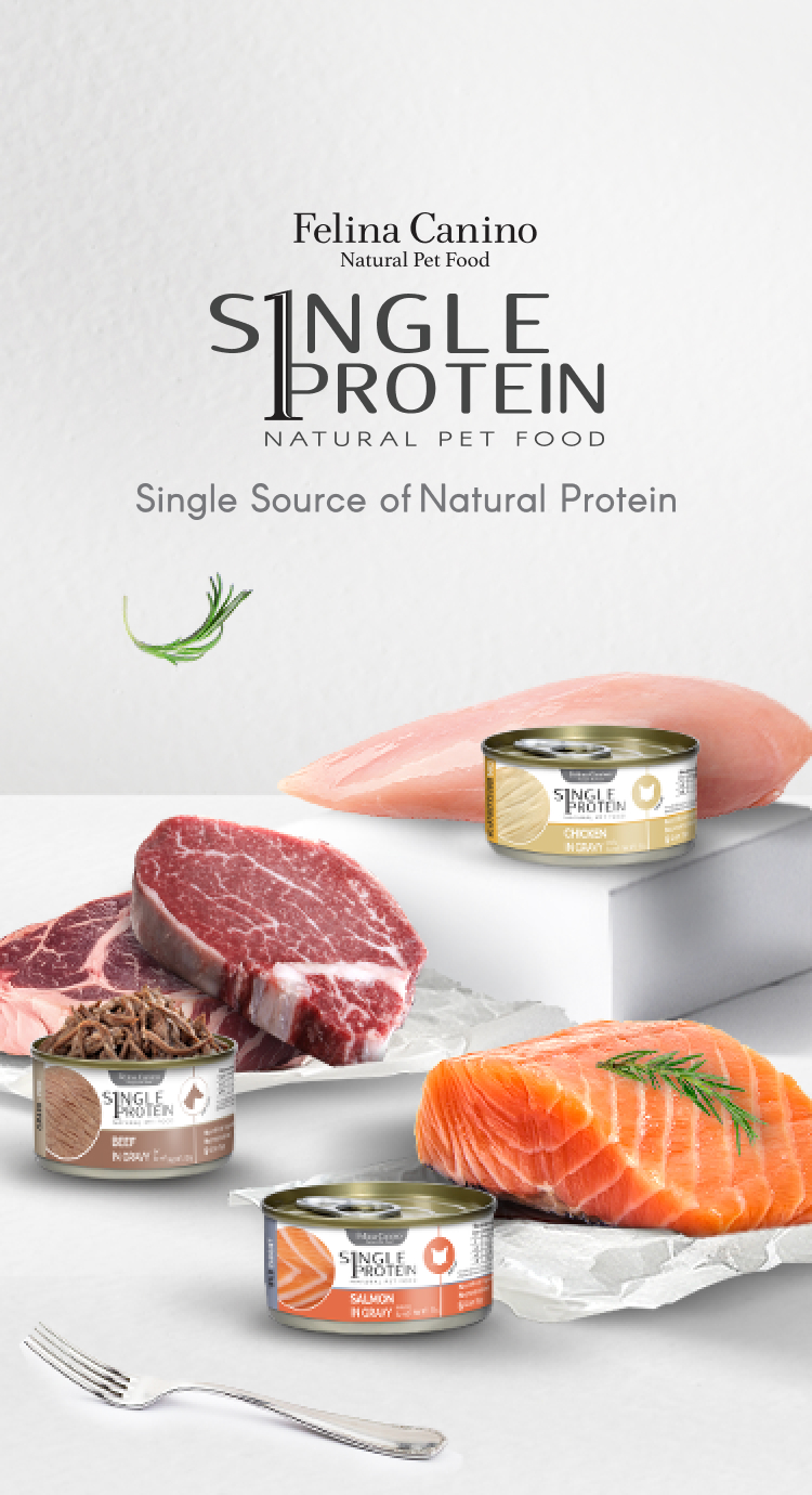 Felina Canino Single Protein offers a variety of food recipes to cater to pets with food allergies, providing them with suitable protein sources tailored to their specific needs. Whether it’s chicken, beef, tuna, salmon, or saba, we offer a variety of options, allowing your pets to enjoy a diverse diet while avoiding food allergies.