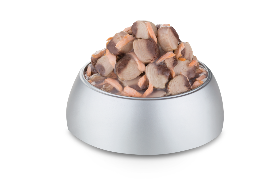 จับคู่สองยักษ์ใหญ่แห่งสองทะเล จัดเต็มเนื้อปลาทูน่าได้รสชาติเข้มข้นเต็ม ๆ ชิ้น รวมกับเนื้อปลาแซลมอนรสชาติหวานละมุน อุดมไปด้วยกรดไขมันชนิดดีหลากชนิด ทั้งโอเมกา-3 โอเมกา-6 และ DHA อยู่ในน้ำเกรวี่กลิ่นหอมแสนอร่อย โดยไม่มีการปรุงแต่งสารสังเคราะห์ ไม่ใส่เกลือ ได้สารอาหารและรสชาติจากธรรมชาติเต็ม ๆ อัดแน่นอยู่ในรูปแบบกระป๋อง เพียงเปิดและเท ก็สามารถให้น้องแมวอิ่มอร่อยได้ง่าย ๆ