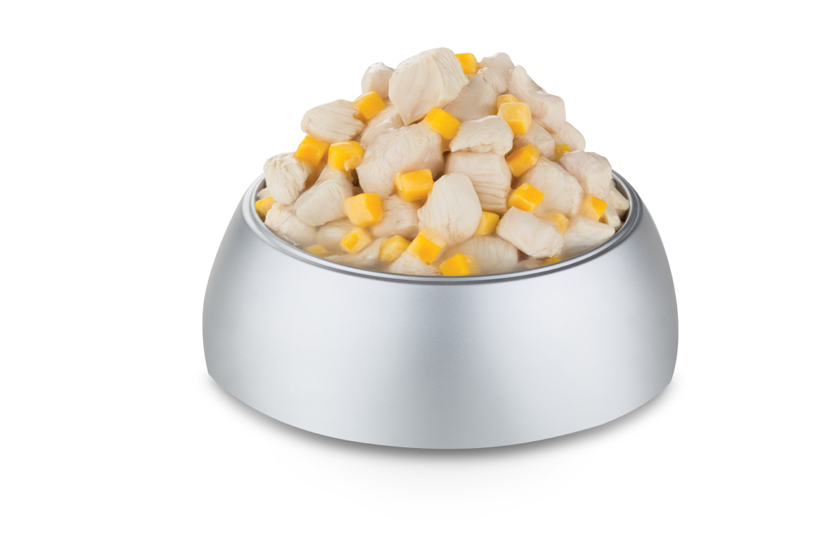 (เนื้อไก่และชีสในน้ำเกรวี่) สำหรับสุนัข